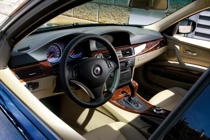 Разбира се и по надписите и емблемите идентифициращи модела. Интериорът на стандартното BMW е променен също при Alpina. Вижда се нов кожен волан и модифициран инструментален панел.