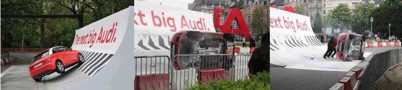 За да докажат това, немците подготвят специално съоръжение (куотърпайп) в столицата на Белгия - Брюксел. Съоръжението обаче се оказва твърде сериозно предизвикателство пред малката кола и пилотът й. Вместо да докаже стабилността на А1, пилотът прави точно обратното - при един от опитите за ефектно преминаване, той губи контрол и преобръща колата.