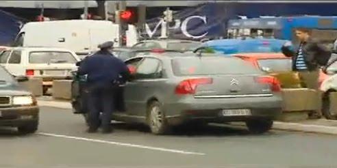 Мъж на средна възраст, видимо пиян, за който зад кадър се чува, че е депутат, прекарва своя Citroen C5 напреки през улицата, а след него върви полицай и се опитва да го спре. Това обаче не е всичко, колата не прави просто завой по улицата, а се качва ..... на стълбите на Парламента, преминава през тях и сякаш нищо не е било си спира на паркинга и започва да говори по мобилния си телефон.