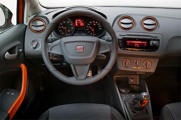 В интериора на специалната версия Seat Ibiza SC има допълнения в оранжево, алуминиеви педали, а също и табелка с индивидуалния номер на автомобила.
