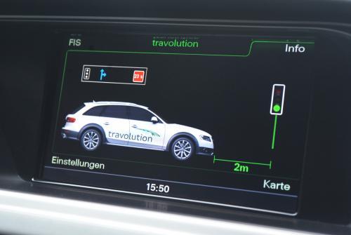 Ако колата пристигне на червен или жълт сигнал, водачът е предупреждаван с визуален и звуков сигнал и на екрана се изписва времето, което трябва да изчака за да светне зелено.