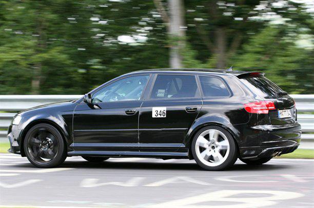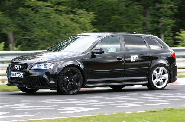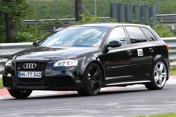 И преди са се появявали шпионски снимки от тестовете на „горещия” автомобил на Нюрбургринг, но винаги досега колата е тествана с „муле” от S3. Сега тестовото муле за първи път е RS3, като се вижда ясно предната броня на RS моделите на Audi. Колелата са по-големи, гумите имат по-нисък профил в сравнение с тези при S3, арките над колелата са издути повече, а следата е по-голяма.