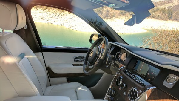 НО ОТ ROLLS-ROYCE СА ПРАВИ, че това не е спортна кола. Cullinan може да бъде бърз, и дори доста пъргав, благодарение на завиващите задни колела. Но не иска. Както във всеки друг Ролс, и тук газта, воланът и скоростната кутия са настроени да работят плавно, а не динамично. Нямате опция за ръчна смяна на предавките, нито пък различни режими за движение извън пътя, като при Range Rover. За сметка на това автоматикът получава постоянно информация от GPS навигацията и подготвя предавките съобразно пътя пред вас.