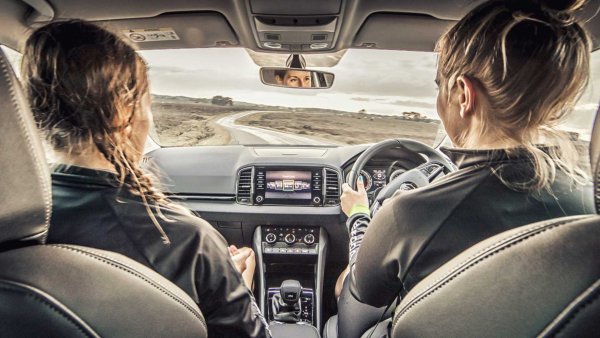 Специалният Karoq разполага със система за закрепване на два велосипеда на покрив и на един в салона, малка пералня машина, хладилник и мивка с висока налягане. Кросоувърът може да бъде оборудван и с малка площадка, на която да каца дрон. Неговата задача е да лети над велосипедистите и да записва тяхното пътуване сред природата. Съответно, има и точка за достъп Wi-Fi, което позволява заснетият материал бързо да се качва в социалните мрежи.