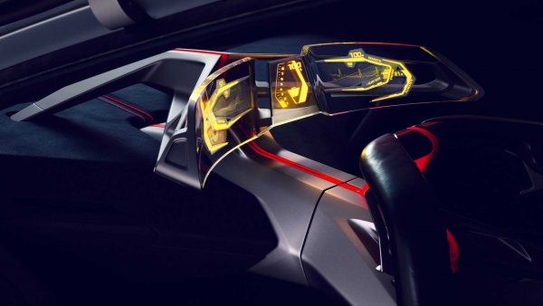 Интериорът на концептуалния автомобил е не по-малко радикален от екстериора. Достъпът до салона става през врати, тип крила на чайка, които се отварят с помощта на система за разпознаване на лица. Водачът има на разположение цифров приборен панел и система за допълнителна реалност, които му дават цялата нужна информация.