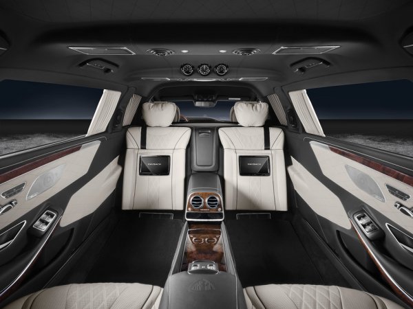 Теглото на лимузината е 5,6 тона. Задвижването на дългия 6,5 метра автомобил е поверено на 6-литров V12 двигател с две турбини, развиващ мощност от 530 конски сили и 900 Нм максимален въртящ момент. Салонът на S600 Pullman Guard W222 се отличава с материали от най-високо качество, бар, индивидуални кресла с функция за масаж и др.