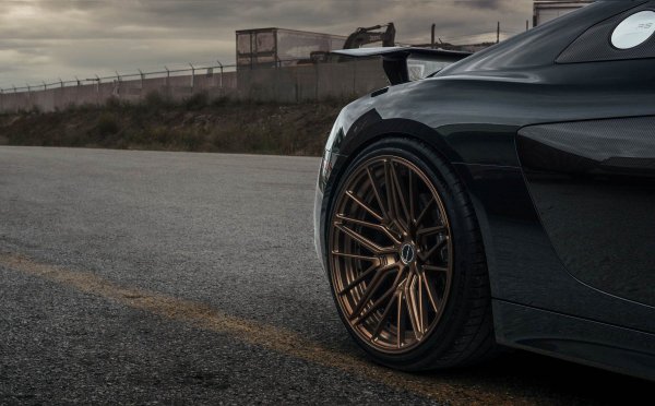 Собствениците на автомобили в тъмен цвят често предпочитат да оборудват колите си с черни джанти, но бронзовите и златните могат да осигурят перфектното ниво на контраст. Задното крило пък допълва образа на бруталния суперавтомобил.
