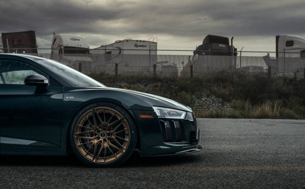 Сега Audi представи специален R8 V10 Plus, направен в сътрудничество с британската компания Brixton Forged, боядисан в тъмен нюанс на сивото. Автомобилът е получил комплект ковани джанти Brixton с размери 20 цола отпред и 21 отзад.