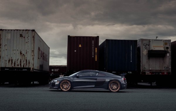 Сега Audi представи специален R8 V10 Plus, направен в сътрудничество с британската компания Brixton Forged, боядисан в тъмен нюанс на сивото. Автомобилът е получил комплект ковани джанти Brixton с размери 20 цола отпред и 21 отзад.