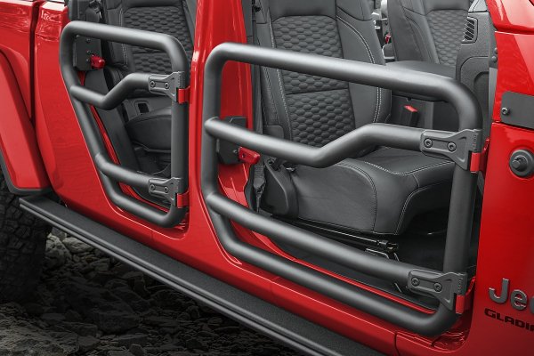 Jeep Pickup Gladiator Rubicon Mopar следователно е нещо като заводски тунинг. В него са монтирани екстри за 12 хиляди долара. Такива са например комплектът за повдигане на каросерията с пет сантиметра, което помага извън пътя. Друг пример са 33-цоловите гуми, които приличат повече на валяци. При качване човек трябва да се напрегне сериозно, но е улеснен от няколко дръжки. Врати от стоманени тръби и мрежа за комари над главите допълват специалната версия.