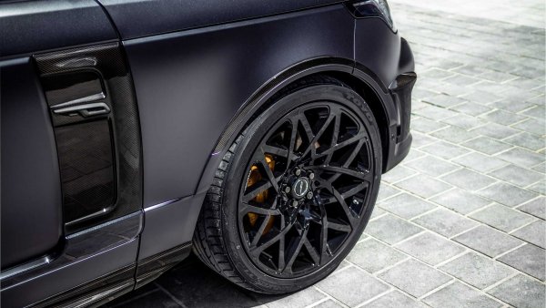 Машината е получила уникални елементи от карбон, както и 23-цолови джанти, направени специално за автомобила. Допълнителният бодикит включва черна броня със сложни елементи, капак с въздухозаборници и черно лого, предпазители на праговете и оригинален дифузьор. Освен това, този Range Rover е получил и специално разработена за него изпускателна система.