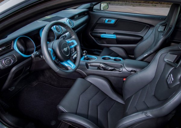 Интериорът на колата до голяма степен повтаря този на серийния Mustang. В него основна роля изпълнява големият сензорен екран с диагонал 10,4 инча, от който могат да се променят режимите на движение.
