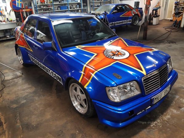 Този Mercedes-Benz W124 300E, по прякор Blueberry (синя боровинка), е направен от шведското ателие Turbobandit в Стокхолм. Седанът първоначално е бил оборудван с 3-литров шестицилиндров двигател M103, но майсторите са го заменили 3-литров M104.992 с турбокомпресор, който сега развива мощност от над 1000 коня. Блокът за управление на двигателя е MegaSquirt MS3X.