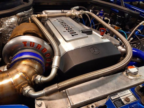Този Mercedes-Benz W124 300E, по прякор Blueberry (синя боровинка), е направен от шведското ателие Turbobandit в Стокхолм. Седанът първоначално е бил оборудван с 3-литров шестицилиндров двигател M103, но майсторите са го заменили 3-литров M104.992 с турбокомпресор, който сега развива мощност от над 1000 коня. Блокът за управление на двигателя е MegaSquirt MS3X.
