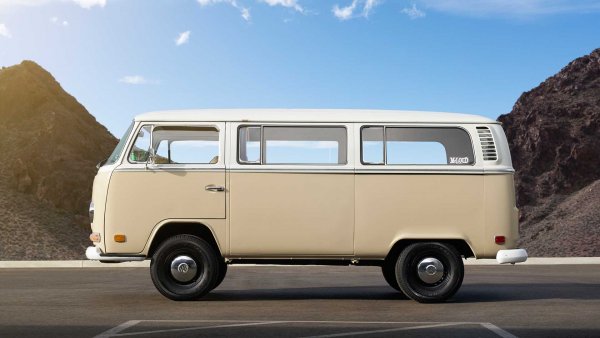 Сега Volkswagen of America предостави агрегата от един e-Golf на специализираната работилница EV West за вграждане в минибута Т2 (1967-1979 г.). Целта на тази задача е да се покажат възможностите на електрозадвижването за класически модели на VW. Резултатът: Т2 в цветове канзаско бежово и пастелно бяло. Очевидно става въпрос за автомобил от 1972 г. с големите стопове.
