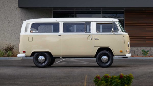 Сега Volkswagen of America предостави агрегата от един e-Golf на специализираната работилница EV West за вграждане в минибута Т2 (1967-1979 г.). Целта на тази задача е да се покажат възможностите на електрозадвижването за класически модели на VW. Резултатът: Т2 в цветове канзаско бежово и пастелно бяло. Очевидно става въпрос за автомобил от 1972 г. с големите стопове.