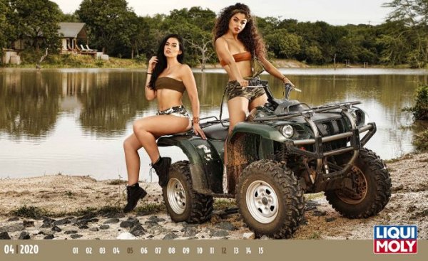 През тази година календарът на германския производител на масло за двигатели Liqui Moly е още по-горещ, като причината е, че снимките са направени на сафари в Африка. Фотографите са запечатали знойните красавици в Националния парк Крюгер в ЮАР, като заснемането е продължи повече от две седмици.