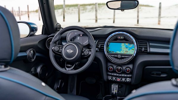 В салона се набива на очи двуцветното изпълнение в контрастиращи жълти и сини цветове. По праговете има алуминиеви табелки с надпис Sidewalk, а в долната част на волана се вижда малко, но забележимо брандиране. Предлаганите още в базовото ниво на оборудване LED фарове, фаровете за мъгла, вътрешното осветление, автоматичната климатизация и режимите на шофиране Mini Driving също са част от новия кабриолет.