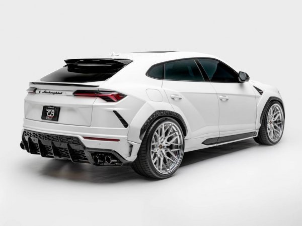 С ново окачване и разделени в няколко части джанти, предната следа на Urus е разширена с 87 милиметра, а задната – със 100. Сега общата широчина е 2,1 метра. Машината, тежаща 2,2 тона, стъпва по-ниско. В салона са добавени детайли, които могат да задоволят фантазията и на най-претенциозните клиенти. В случая се виждат червена кожа и карбонови детайли.