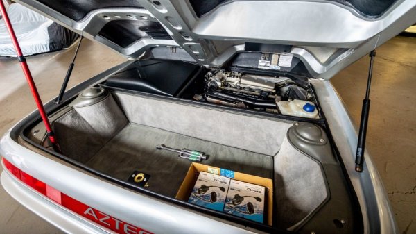 Онлайн аукционът Bring a Trailer публикува за продажба уникален автомобил. Става дума за роудстъра Italdesign Aztec, произведен през 1988 г. Този автомобил има доста необичайна архитектура - два отделни кокпита за водача и пътника до него. Всеки от тях е оборудван с подвижен стъклен покрив.
