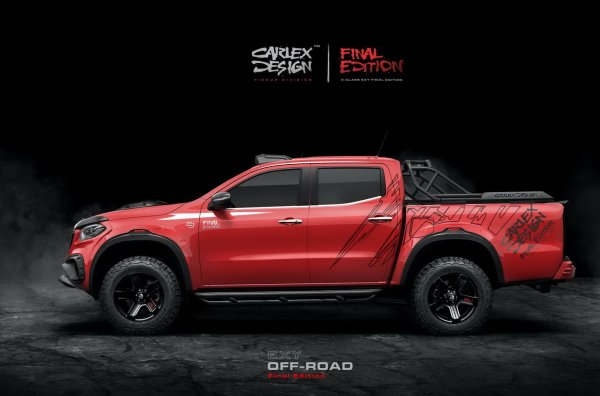 Полското дизайнерско бюро Carlex се сбогува с пикапа Mercedes-Benz X-Class, чието производство ще бъде прекратено през март, като направи две ексклузивни версии на модела - Off-Road Final Edition и Extreme Final Edition. Машината е получила допълнителен лукс, проходимост и бруталност, както и нови елементи по екстериора и интериора.