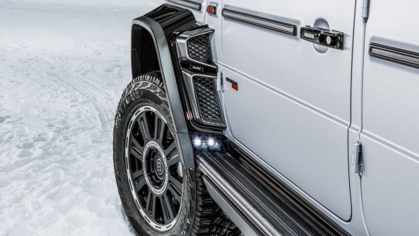 За начало, в Brabus са удължили рамата на всъдехода с половин метър и така са си осигурили достатъчно място за създаване на товарна платформа. В основата си тя е от стомана, докато бордовете са от карбон. В крайна сметка дължината на всъдехода AMG G 63 е увеличена с близо 70 см и достига 5,31 метра. Благодарение на порталните оси е преработено и окачването, а пътният просвет вече достига 49 см.