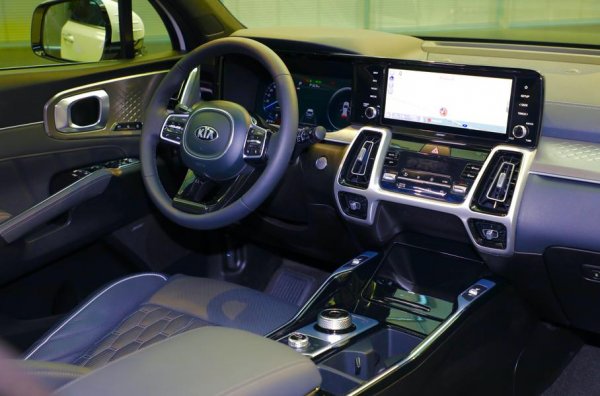Салонът на новото Sorento представлява съчетание от премиум-материали и прогресивни технологии. На предния панел е разположен обединен в едно виртуален приборен панел с диагонал 12,3 инча и екран на мултимедията (10,5 инча), като на централната консола са разположение управлението на климатика, „шайба“ за смяна на предавките и селектрор за режимите на движение.