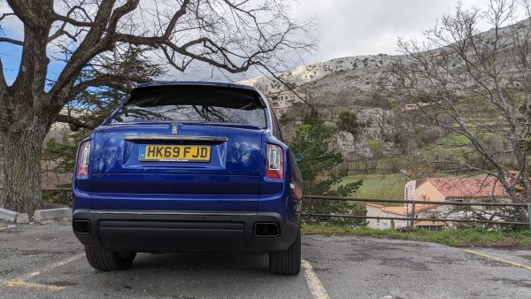 Случайна среща с McLaren 600LT край едно провансалско селце. От пръв поглед личи коя тук е спортната кола. Но всъщност Cullinan има с 8 конски сили и с 280 нютонметра повече
