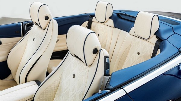 Салонът на машината е обшит с кожа Nappa – бежова Magnolia и синя Royal Blue. Тя е шита на ръка, но за разположението и е използвано компютърно управление. С кожа са покрити дори вътрешната част на вратите и на вдигащия се покрив. На пода на Mercedes-AMG E 53 Cabriolet са поставени стелки от овча кожа.