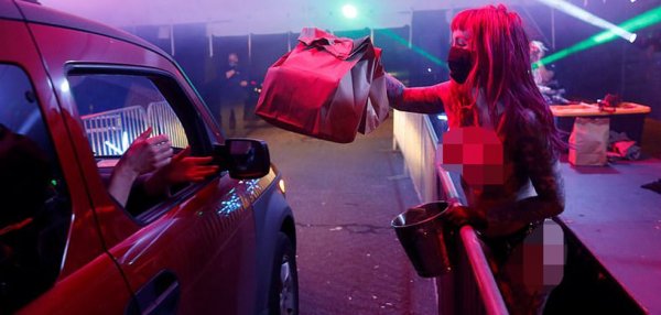 Това, което на практика са създали шефовете на The Lucky Devil Lounge, е първият в историята drive-thru стриптийз бар. След като на 16 март властите в щата Орегон затворили заведението им, те започнали отчаяно да търсят други варианти - и ги намерили. На паркинга пред заведението собственикът Шон Боулдън е инсталирал голяма палатка със сцена за еротични танци и рампа. Клиентите влизат направо с колите си, поръчват си храна, получават доставка от предпочитаната танцьорка през прозореца на колата, а междувременно може да погледат танца й, и да я възнаградят с бакшиш.
