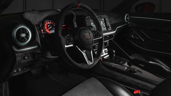 Интериорът не е подложен на същото ниво промени като екстериора, но в салона доста по-щедро са използвани въглеродни влакна, кожа и алкантара. Това е напълно очаквано за специално издание с ограничен тираж, но те наистина не могат да скрият възрастта на GT-R. В крайна сметка R35 е на около 13 години...