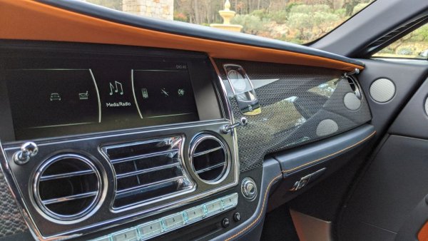 Както във всеки друг Rolls, и тук няма оборотомер, а само скaла, която показва какъв процент от наличната мощност ползвате в момента. Въпреки внушителното ускорение колата е настроена да успокоява и да прави всичко по възможно най-плавния начин.