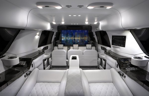 Cadillac Escalade ESV е удължен с 50 см и може да се използва в качеството на подвижен офис или на домашен киносалон. В автомобила е инсталирана аудиосистема 7.1 и 43-инчов екран екран Smart TV UHD. Салонът е оборудван с прибиращи се масички от японско дърво (ясен), големи кресла, електрически поставки да краката, малко барче и 12-инчов приборен панел а управление.
