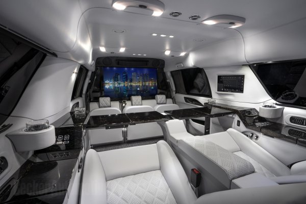 Cadillac Escalade ESV е удължен с 50 см и може да се използва в качеството на подвижен офис или на домашен киносалон. В автомобила е инсталирана аудиосистема 7.1 и 43-инчов екран екран Smart TV UHD. Салонът е оборудван с прибиращи се масички от японско дърво (ясен), големи кресла, електрически поставки да краката, малко барче и 12-инчов приборен панел а управление.