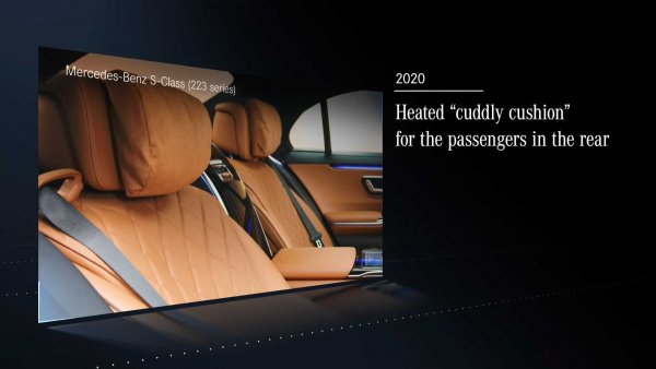 В крайна сметка, целият интериор на S-Class вече е разкрит, като последни бяха показани снимки на втория ред седалки. В случая те са на версията на лимузината с 4 места, при която отзад са поставени две отделни кресла и допълнителна бизнес-консола. Общо за модела са предвидени 5 варианта на конфигурации на задния ред.