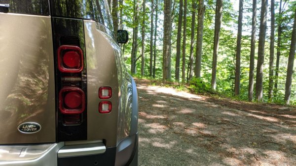 ОЩЕ СЛЕД ПЪРВИЯ КИЛОМЕТЪР в гората обаче се убеждаваме, че и Defender не е за подценяване. Под дебелия слой глезотии и екстри се крие една изключително способна офроуд машина.