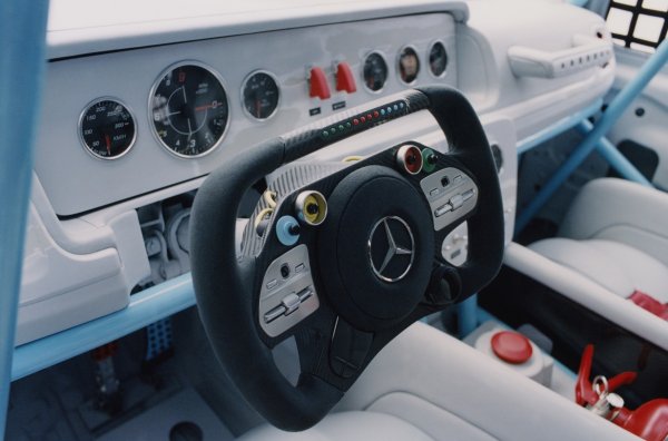 Вътрешното пространство на всъдехода е в спартански стил. Централният елемент на салона е каркас за безопасност, който се допълва от опростен вариант на предния панел с аналогови прибори, волан от хиперколата Mercedes-AMG One, спортни седалки и защитни мрежи на прозорците. Цветовата гама съответства на екстериора, като основният цвят е бял, а акцентите – червени и светло-сини.