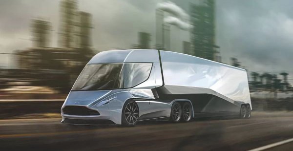 Полуремаркето на Aston Martin, очевидно вдъхновено от модела DB11, с характерна предница, е доста органично интегрирана във впечатляващата кабина с огромна панорамна стъклена площ. Като цяло всичко изглежда устремено и "вкусно" по дизайнерски начин.