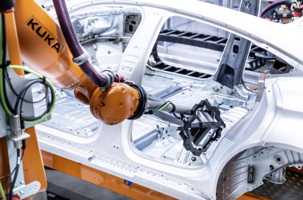 Каросерията на електромобила е направена от смес от стомана и алуминий, като се изработва на стенд в завода с десет роботизирани платформи. Всичко е автоматизирано, като се контролира на най-високо ниво и всяка кола се проверява детайлно при напускането на каросерийния цех.
