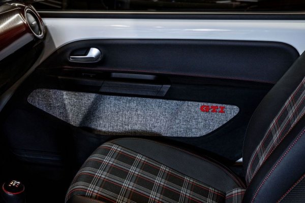 Връщайки се обратно в 21-ви век, интериорът на Up GTI е един от най-смелите и красиви сред класа си. Тартанът, в който са облечени седалките, червеното табло на пиксели и червените контрастни шевове на волана са изглежда точната формула да върнеш ретрото на мода. При това да изглежда сякаш е от колекция за този сезон.