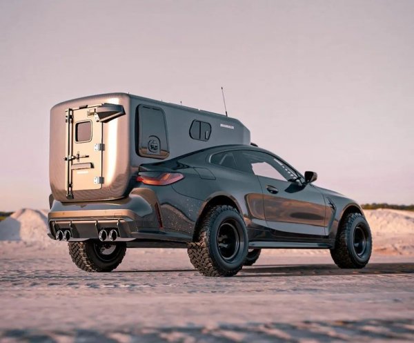 Според автора този M4 Overlander Concept е готов за всякакви изпитания и ще осигури на собственика си приличен комфорт в пустошта, защото задните седалки и багажникът са заменени с мини кемпър с легло, кухничка и два соларни панела за енергия. Все пак BradBuilds все още не е показал интериора.