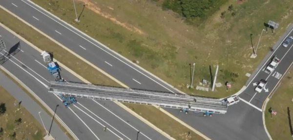 Това клипче на американската транспортна компания Buchanan от превоз, извършен това лято, ясно показва какви са предизвикателствата при извънгабаритните товари. Меко казано "извънгабаритни", защото в случая става дума за нещо с 4.2 метра ширина, 4.8 метра височина и цели 71.6 метра дължина. "Нещото" е всъщност портал за автоматично отчитане на магистрална такса, който ще замени съществуващите будки с хора на една от най-широките магистрали във Флорида.