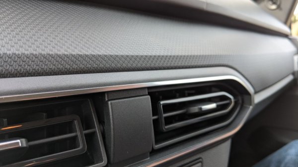 Естествено, мнозина от нас биха предпочели все пак да имат отделен екран за навигацията, и за тях Dacia предлага 8-инчов сензорен дисплей в по-високите версии. Той поддържа Android Auto и Apple Car Play, и върви в комплект с вградена стойка за смартфон - не особено естетична, трябва да признаем, но иначе удобна.