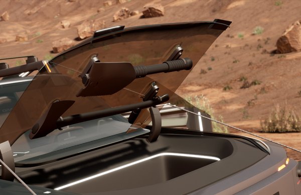 И като споменаваме аксесоари, малкият всъдеход е добре оборудван с такива за офроуд - зад седалките има пътечки против буксуване, а под споменатия прозрачен капак са захванати брадва и лопата. На покрива има заготовка за експедиционен багажник, а от там до бронята са спуснати т. нар. "ванти" - въжета, които предпазват предното стъкло от удари на клони.