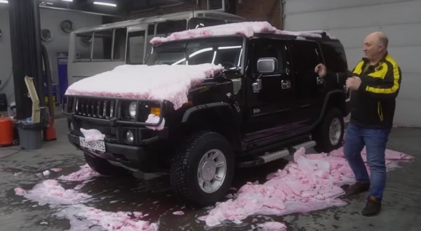 Това куриозно видео е последният експеримент на Garage54, нашумелите влогъри от Новосибирск. При минус 38 градуса той решава да види какво ще се случи с личния му Hummer, ако го напръска с почистваща пяна. Става дума за същия нещастен Hummer, който в предишен експеримент бе поставен върху джанти от Лада.