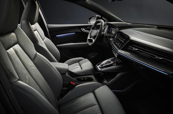 Освен това, в интериора на Q4 e-tron може да бъде поставен 10,1-инчов сензорен екран на мултимедийната система MMI (по-късно ще се предлага и вариант с диагонал 11,6 инча, който е най-големият за автомобили на Audi), а също така централна въздушна възглавница и спортни седалки.