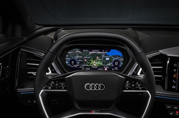 Компанията Audi разкри интериора на серийния Q4 e-tron, който е четвъртият електрически кросоувър на марката. Той получава две необичайни функции - проекционен дисплей с функция за допълнена реалност и гласов асистент, който се активира с фразата "Hey, Audi!".