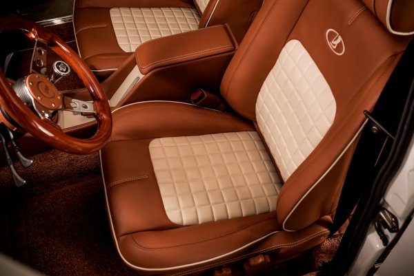 Седалките, които очевидно не са оригиналните от ВаЗ, са облицовани във фина кафява и бежова кожа с контрастни бели шевове. Воланът е с дървена облицовка, като дърво се вижда и по други места в кабината, а педалите са алуминиеви. Налице е изцяло нова централна конзола, в която е поместена качествена аудиосистема.