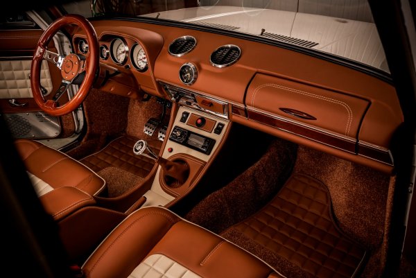 Седалките, които очевидно не са оригиналните от ВаЗ, са облицовани във фина кафява и бежова кожа с контрастни бели шевове. Воланът е с дървена облицовка, като дърво се вижда и по други места в кабината, а педалите са алуминиеви. Налице е изцяло нова централна конзола, в която е поместена качествена аудиосистема.