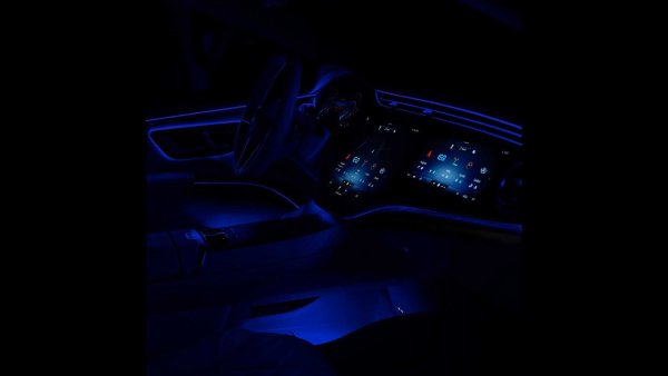 Екранът Hyperscreen е опция, базовият модел ще получи централна консола. Дисплеите имат тактилна обратна връзка - както при новата S-Class. За електромобила е предвиден и проекционен дисплей, който е направен от матрица с 1,3 млн. огледала и предлага качество на картината като на 77-инчов монитор.